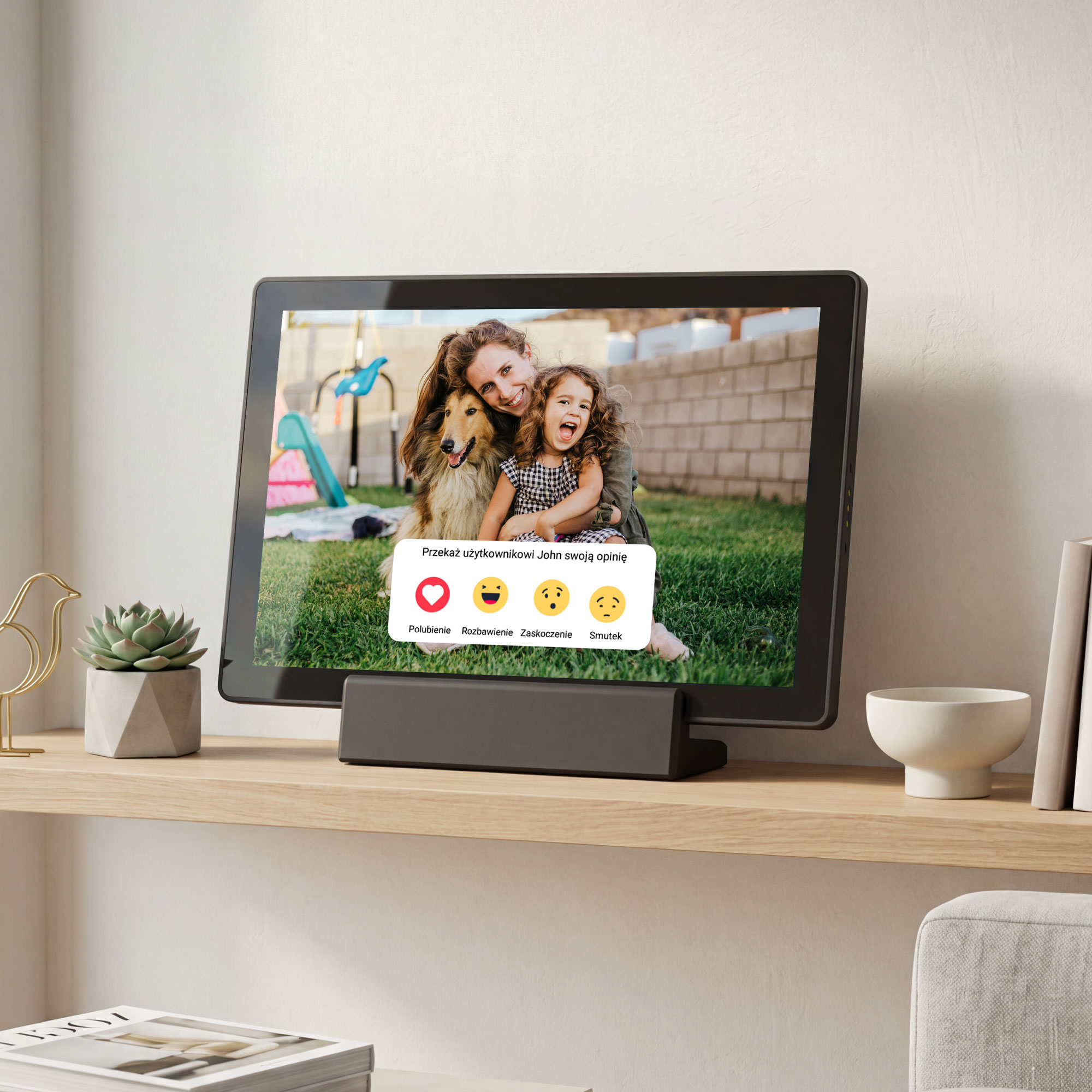 Ramka Kruger&Matz umożliwia połączenie wielu urządzeń jednocześnie, dzięki czemu cała rodzina może dodawać zdjęcia i filmy. Użytkownicy mogą reagować i komentować udostępnione treści, co tworzy interaktywną, cyfrową galerię wspomnień. To nowoczesny sposób komunikacji, który buduje więzi i angażuje wszystkich domowników.