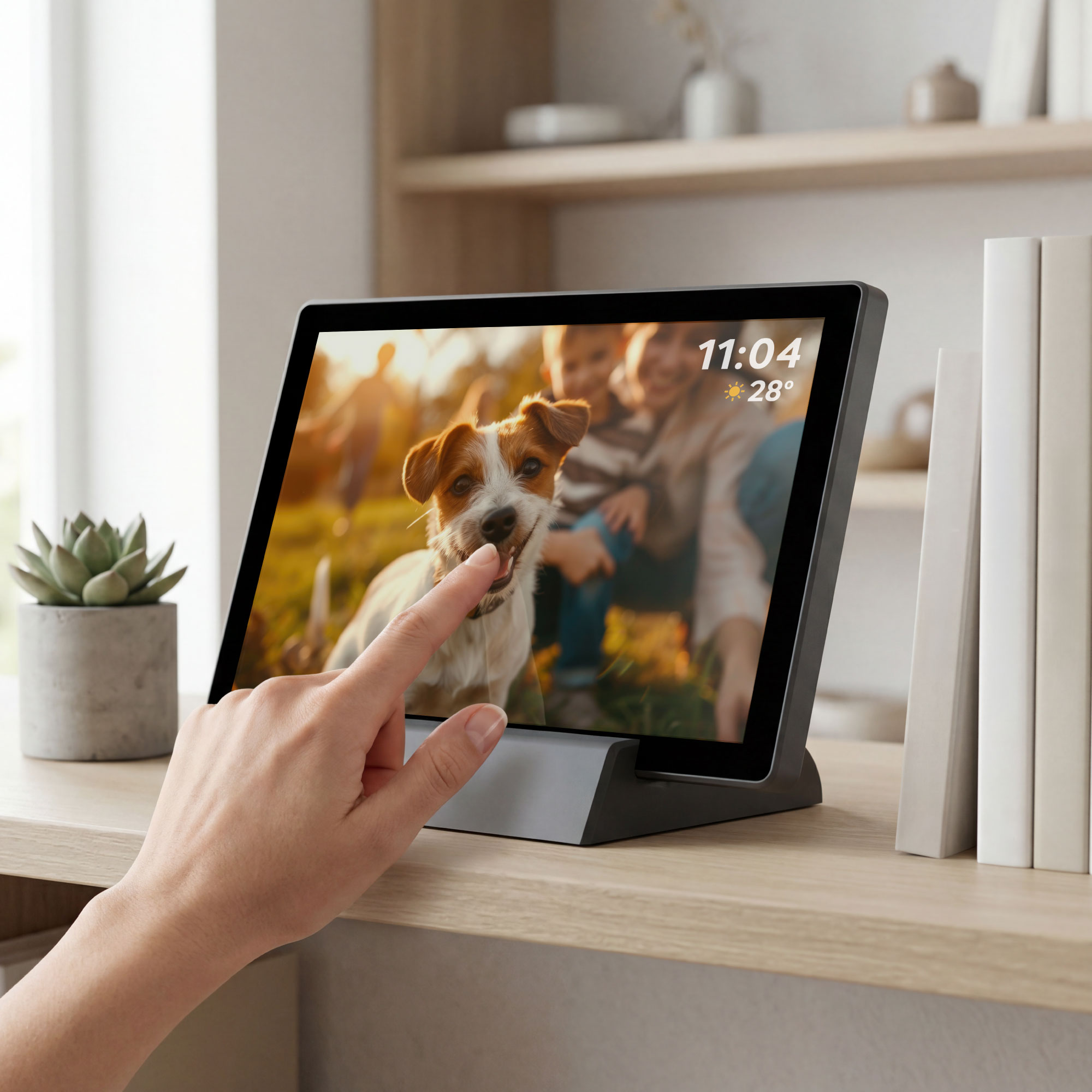 5-punktowy ekran dotykowy IPS zapewnia wygodną i intuicyjną obsługę urządzenia. Wysoka rozdzielczość 1280×800 px oraz doskonały kontrast sprawiają, że zdjęcia są wyraźne i pełne detali. Nawigacja jest szybka i naturalna, co sprawia, że korzystanie z ramki jest przyjemne nawet dla osób mniej technologicznych.