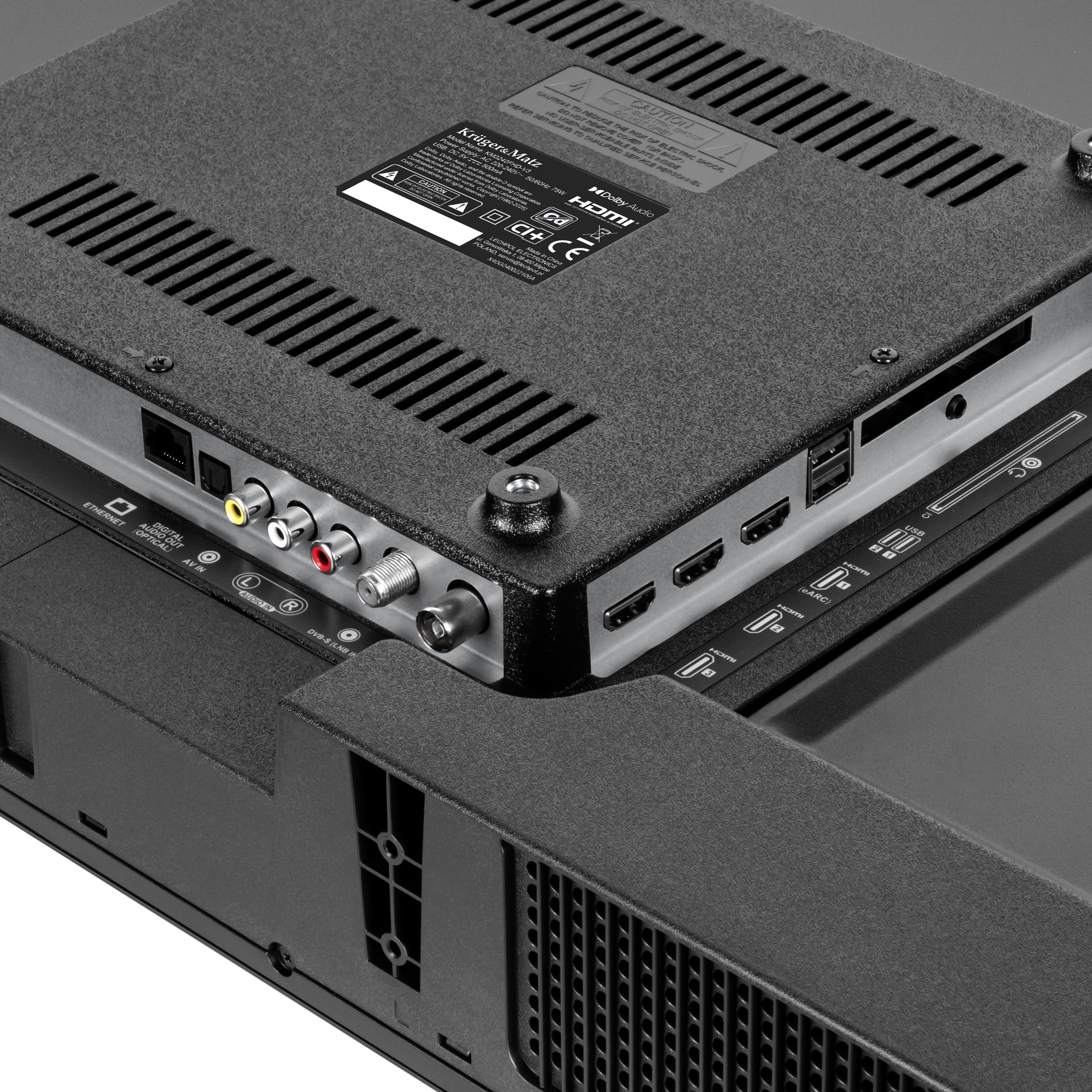 Telewizor Kruger&Matz został wyposażony w szereg portów, dzięki którym możesz w dowolny sposób podłączyć dodatkowe urządzenia, zamieniając go w platformę multimedialnej rozrywki. Oglądaj filmy, podłącz konsolę do gier lub kino domowe i w pełni korzystaj z możliwości swojego telewizora.